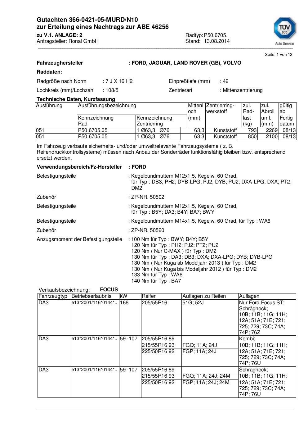 Dieses Gutachten (abe) bezieht sich auf die Alufelge ATS P50.6705 in der Ausführung 7Jx16 ET 0, Mittenloch 0 mm (KBA 46256). Im PDF findest du typischerweise zulässige Reifengrößen, Auflagen/Anbauhinweise und – je nach Dokument – Hinweise zur Eintragung.