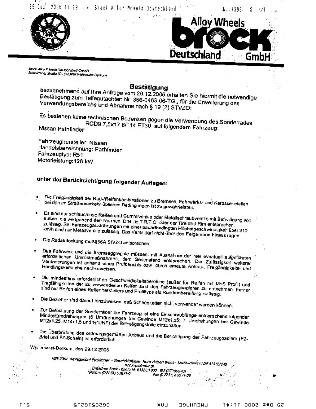 Felgengutachten / abe für Alufelgen Brock RCD9 757 (7.5Jx17 ET 0, Mittenloch 0 mm) mit KBA 46260 (Zertifikatsnummer 46260). Hier kostenlos als PDF herunterladen. Der Download-Link ist 24 Stunden gültig und kann bis zu zwei Mal verwendet werden.