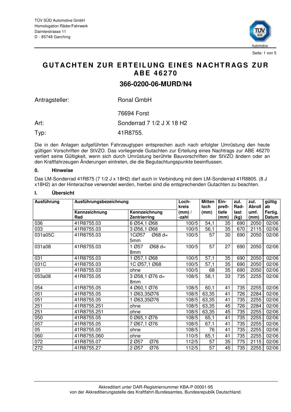 - Ronal 41R8755 – 7.5Jx18 ET0.0 (KBA 46270)