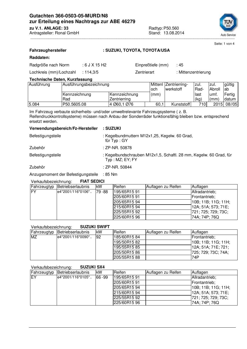 Fahrzeughersteller: FIAT, SUZUKI, TOYOTA