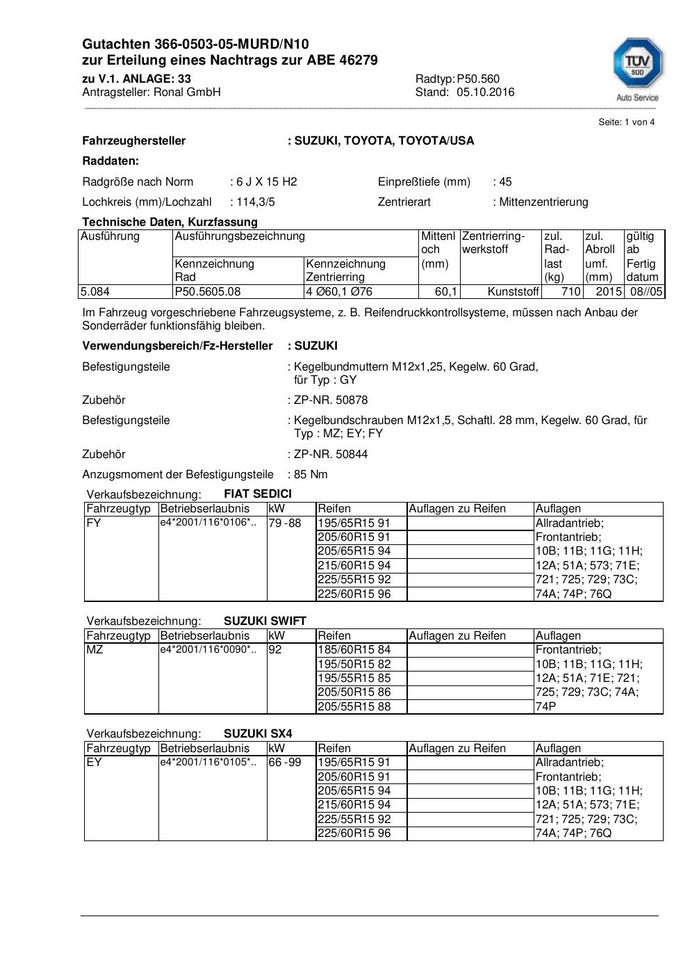 Fahrzeughersteller: FIAT, SUZUKI, TOYOTA