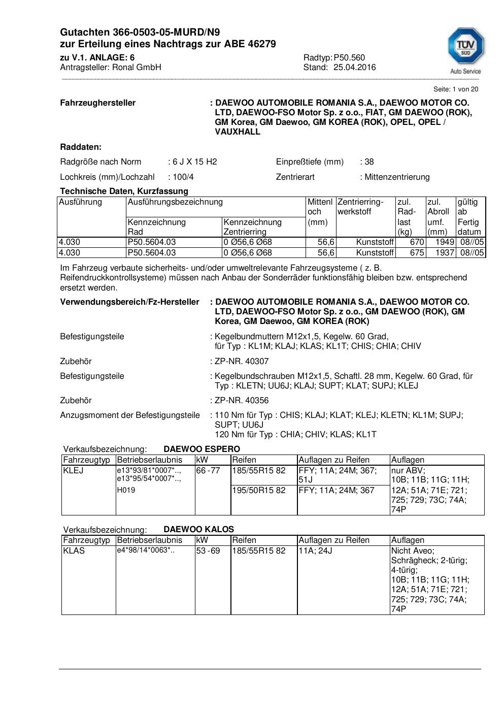 Fahrzeughersteller: CHEVROLET, DAEWOO, FIAT, OPEL, VAUXHALL