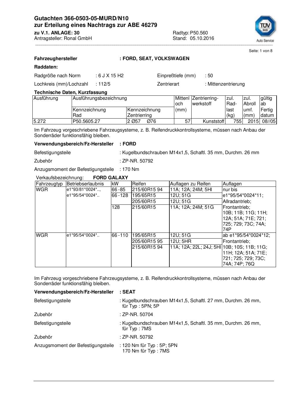 Felgengutachten / abe für Alufelgen ATS P50.560 (6Jx15 ET 0, Mittenloch 0 mm) mit KBA 46279 (Zertifikatsnummer 46279). Hier kostenlos als PDF herunterladen. Der Download-Link ist 24 Stunden gültig und kann bis zu zwei Mal verwendet werden.