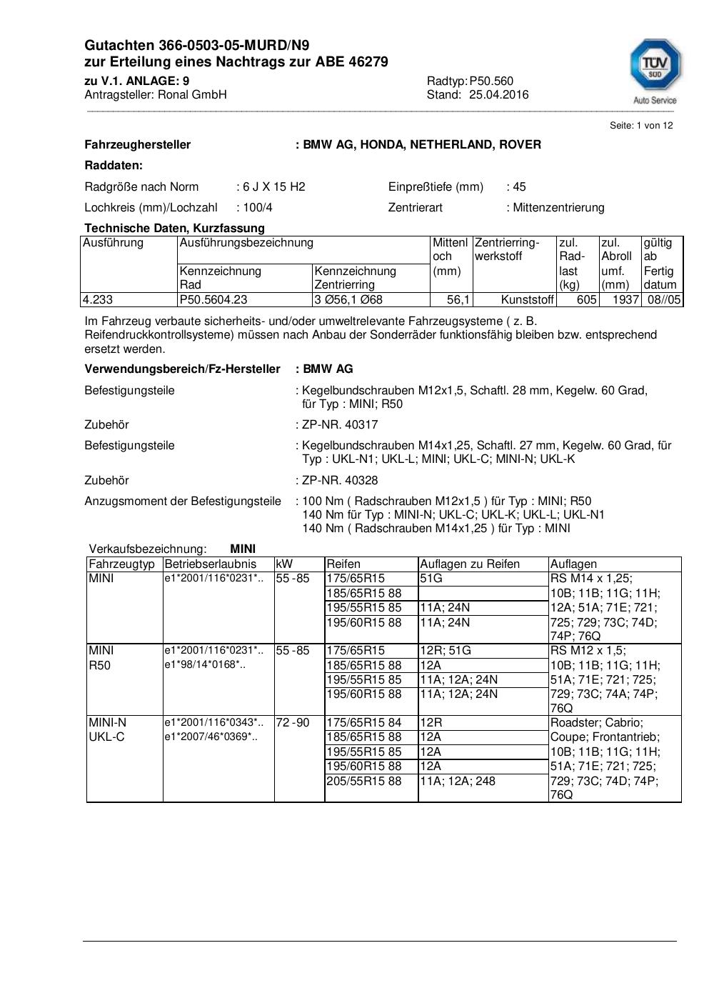 - Ronal P50.560 – 6.0Jx15 ET0.0 (KBA 46279)