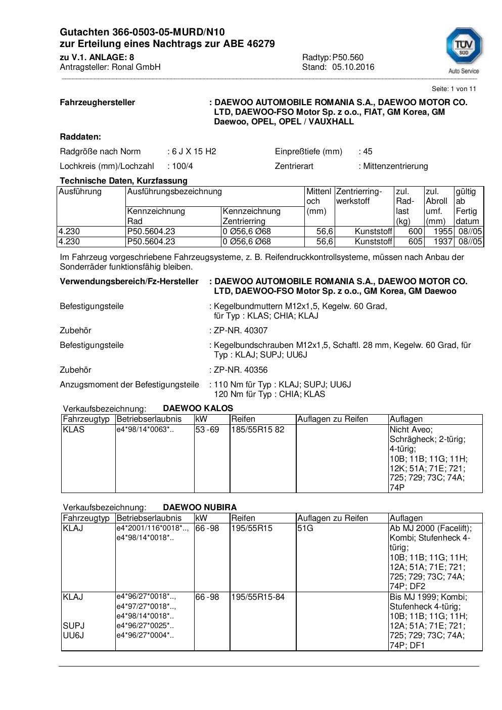 Fahrzeughersteller: DAEWOO, FIAT, OPEL, VAUXHALL