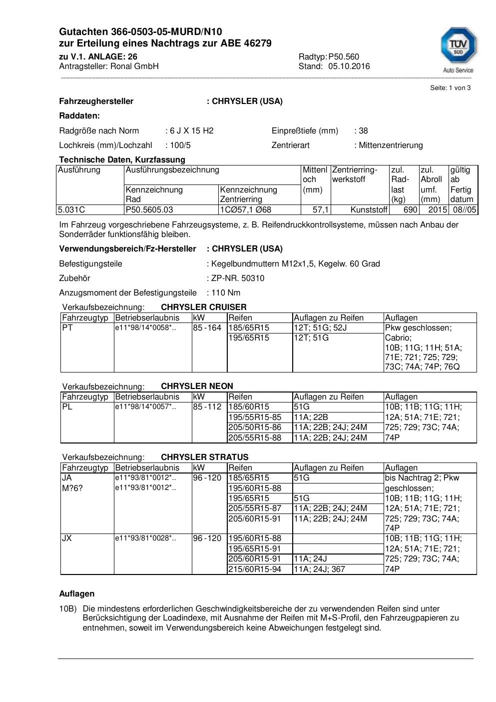 Passend für: CHRYSLER (1 Hersteller, 1 Varianten)