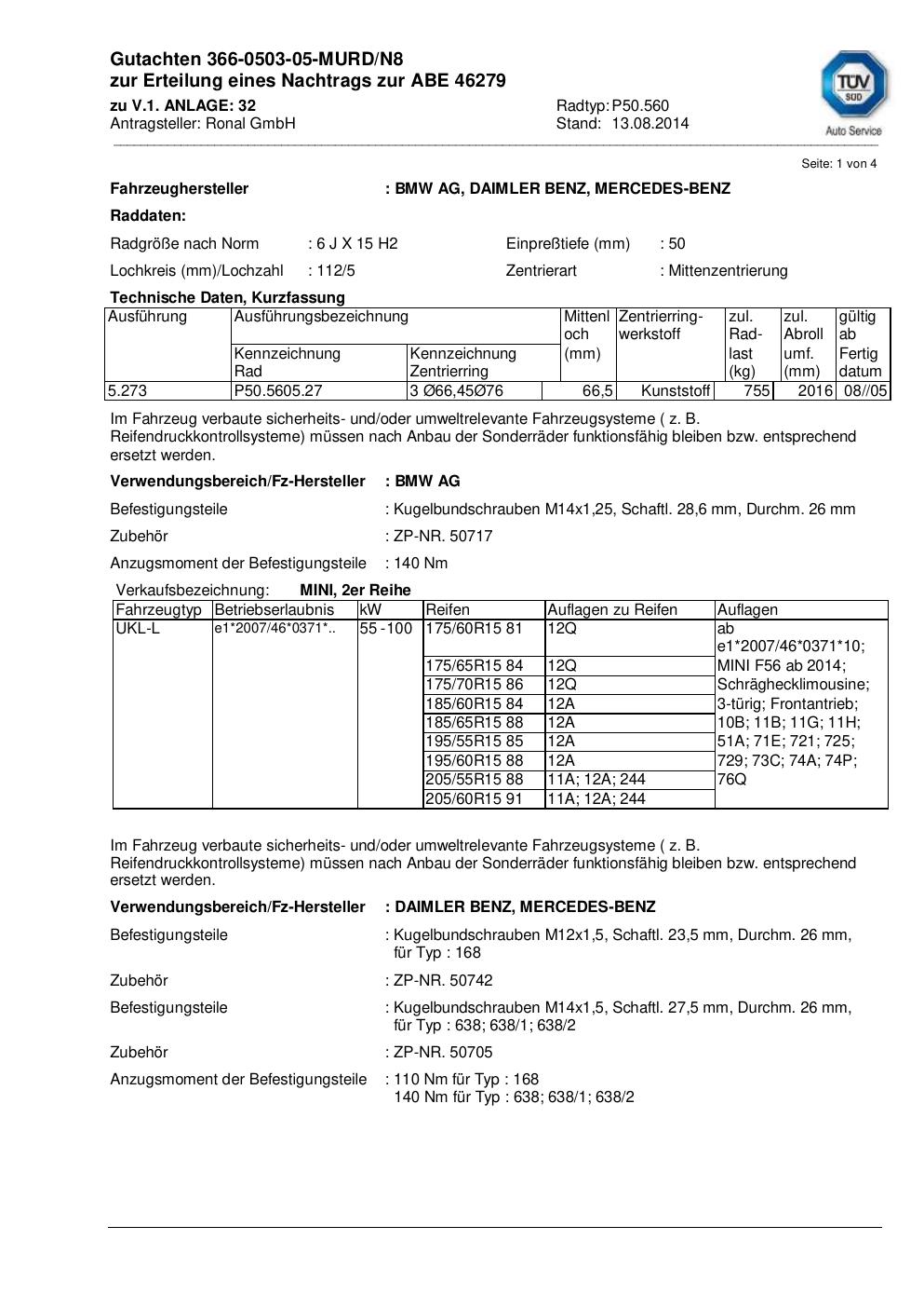 Felgengutachten / abe für Alufelgen ATS P50.560 (6Jx15 ET 0, Mittenloch 0 mm) mit KBA 46279 (Zertifikatsnummer 46279). Hier kostenlos als PDF herunterladen. Der Download-Link ist 24 Stunden gültig und kann bis zu zwei Mal verwendet werden.