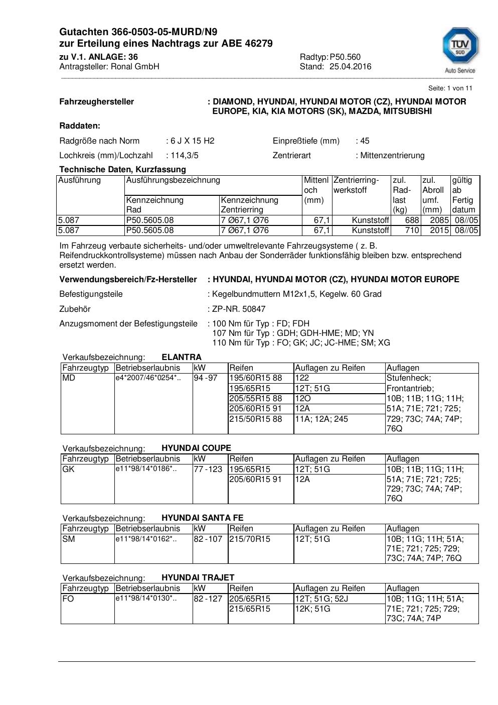 Fahrzeughersteller: DIAMOND, HYUNDAI, KIA, MAZDA, MITSUBISHI