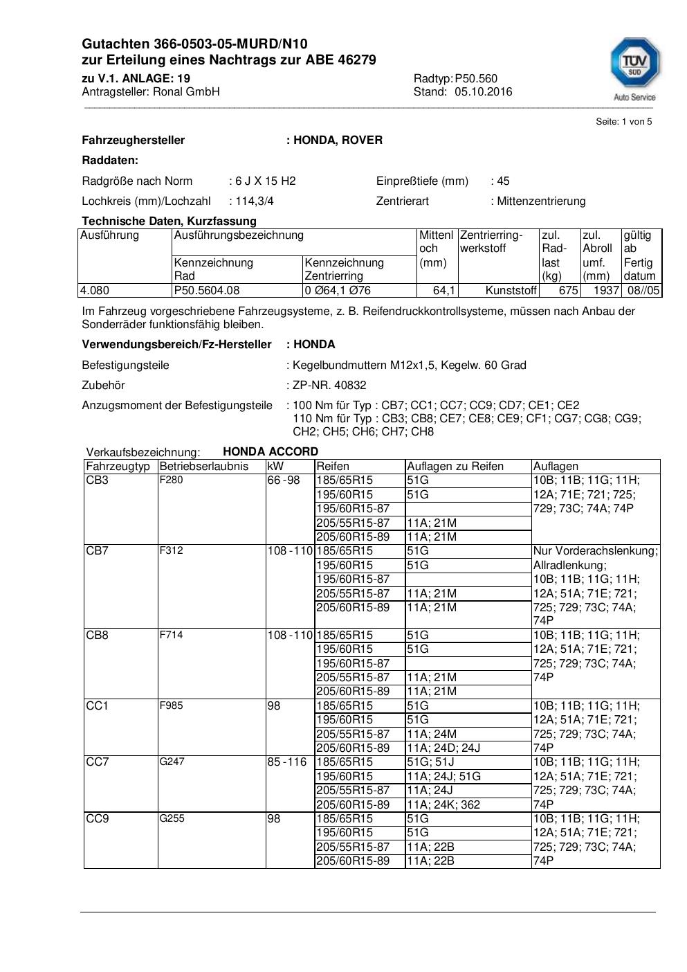 Dieses Gutachten (abe) bezieht sich auf die Alufelge ATS P50.560 in der Ausführung 6Jx15 ET 0, Mittenloch 0 mm (KBA 46279). Im PDF findest du typischerweise zulässige Reifengrößen, Auflagen/Anbauhinweise und – je nach Dokument – Hinweise zur Eintragung.