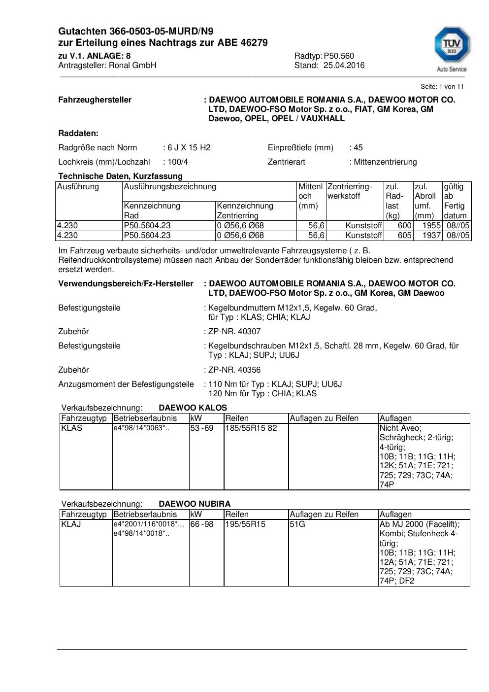 Felgengutachten / abe für Alufelgen ATS P50.560 (6Jx15 ET 0, Mittenloch 0 mm) mit KBA 46279 (Zertifikatsnummer 46279). Hier kostenlos als PDF herunterladen. Der Download-Link ist 24 Stunden gültig und kann bis zu zwei Mal verwendet werden.