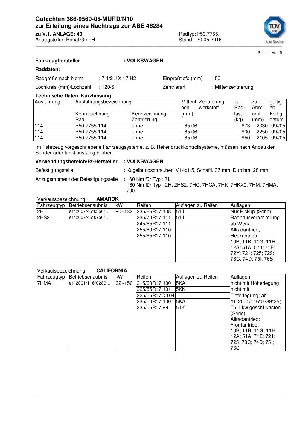 • Stimmt die KBA-Nummer auf der Felge mit diesem Dokument überein?
