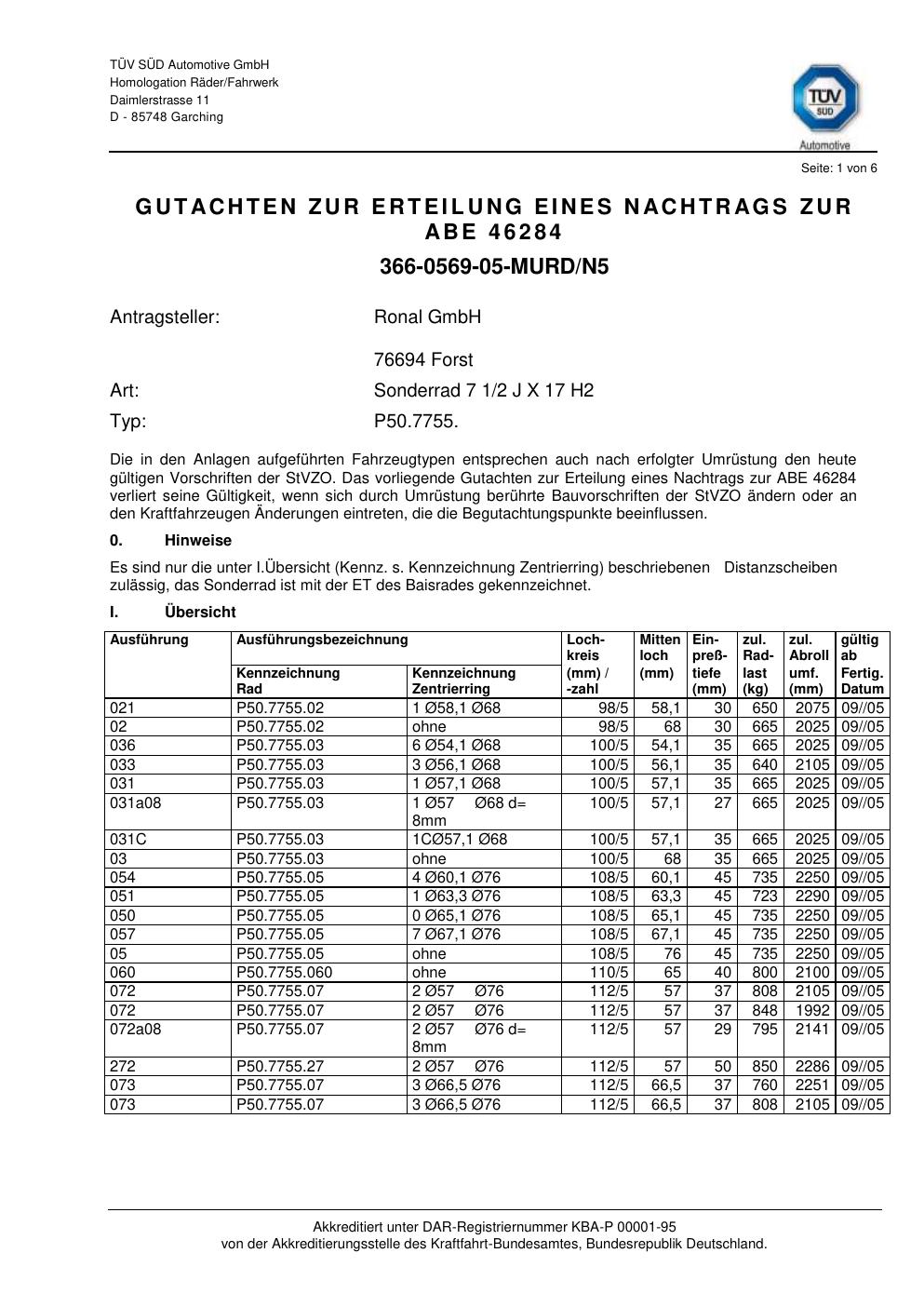 • Stimmt die KBA-Nummer auf der Felge mit diesem Dokument überein?