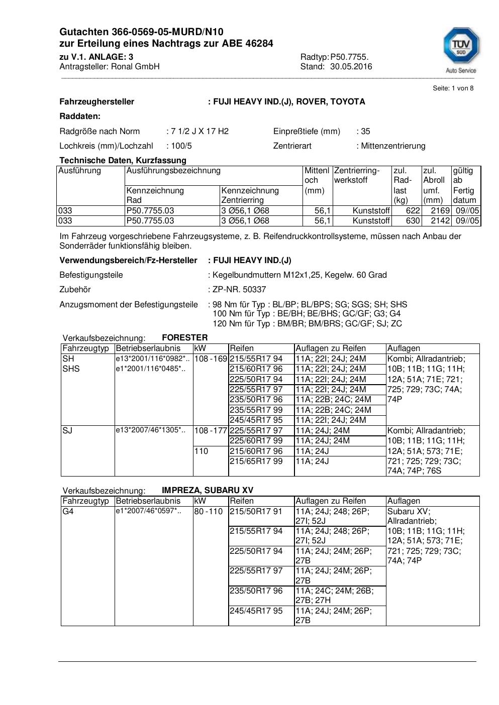 • Stimmt die KBA-Nummer auf der Felge mit diesem Dokument überein?