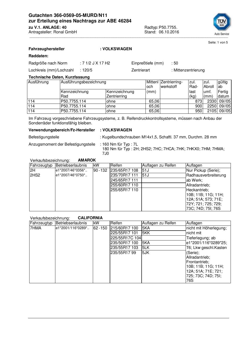• Stimmt die KBA-Nummer auf der Felge mit diesem Dokument überein?