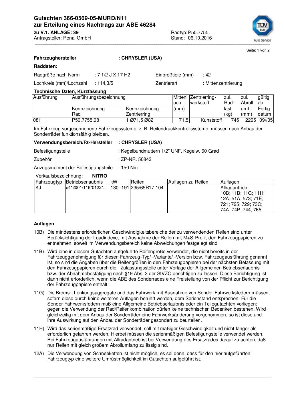 • Stimmt die KBA-Nummer auf der Felge mit diesem Dokument überein?