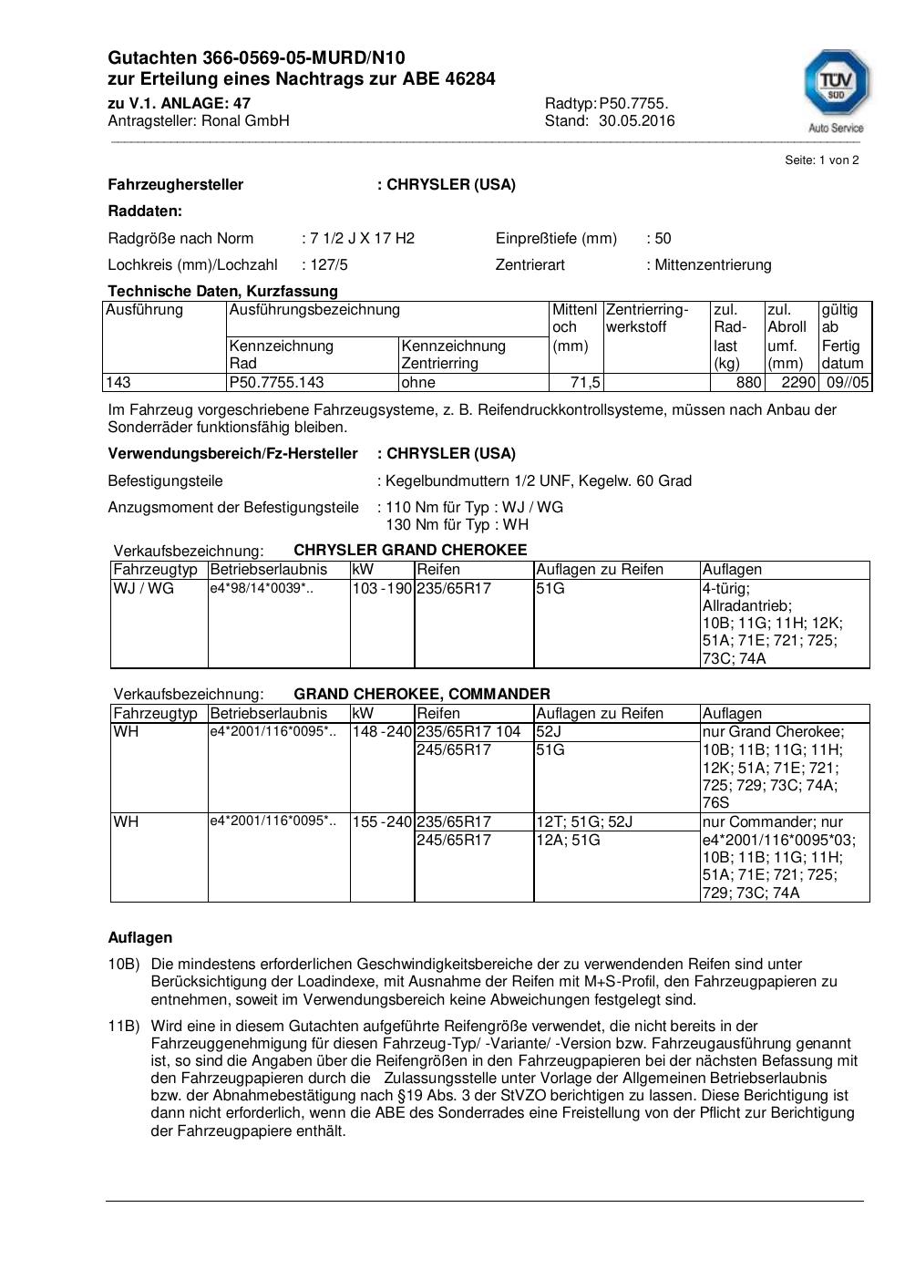 • Stimmt die KBA-Nummer auf der Felge mit diesem Dokument überein?
