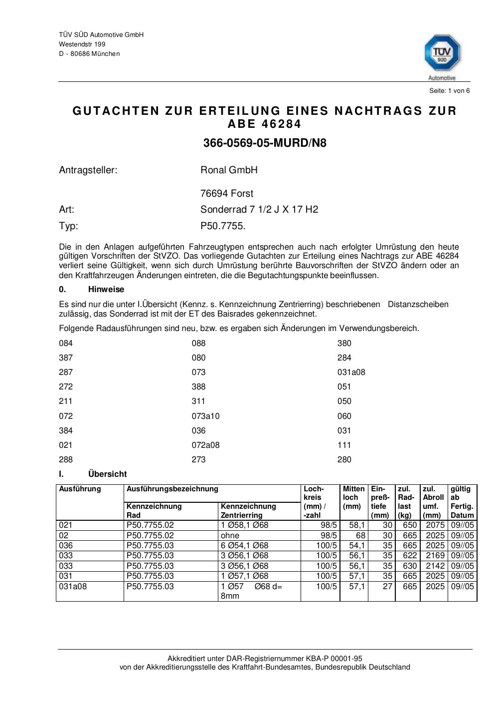 • Stimmt die KBA-Nummer auf der Felge mit diesem Dokument überein?
