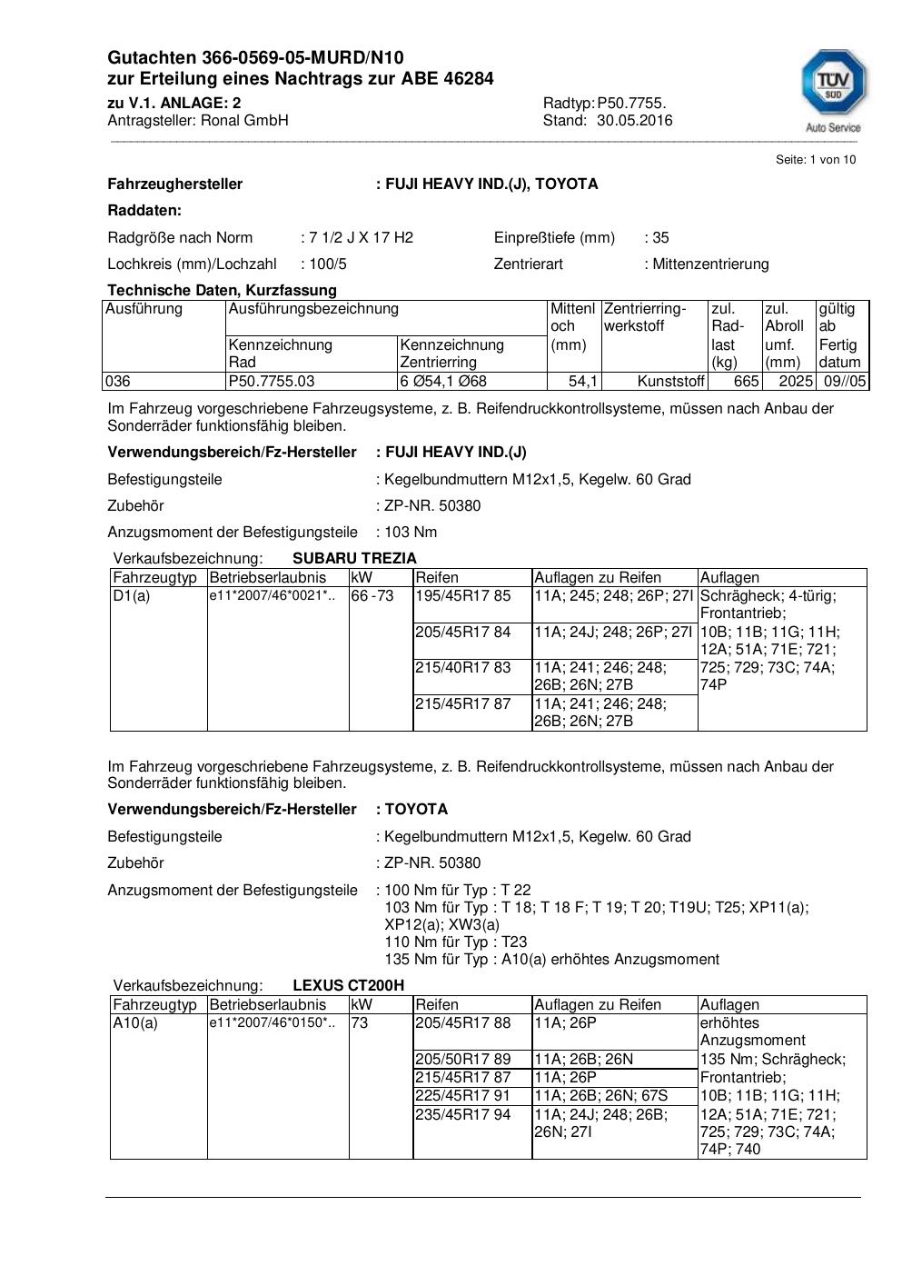 Fahrzeughersteller: LEXUS, SUBARU, TOYOTA