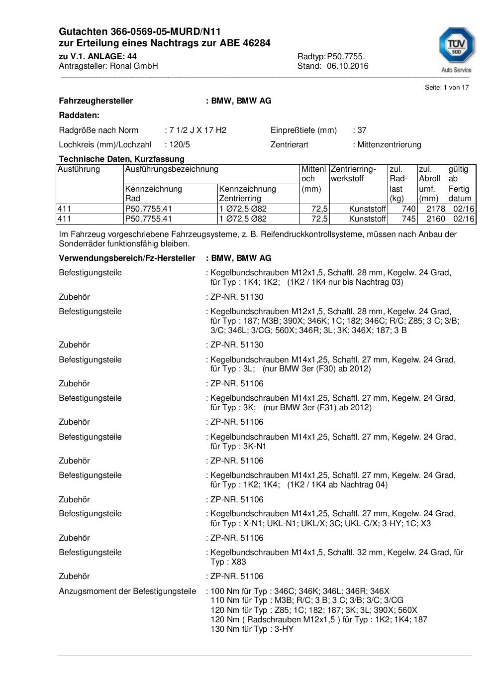 Diese Varianten sind zum aktuellen Dokument besonders nah. Maßgeblich sind vor allem gleiche KBA-Nummer, gleiche Serie oder eine sehr ähnliche Felgengröße.