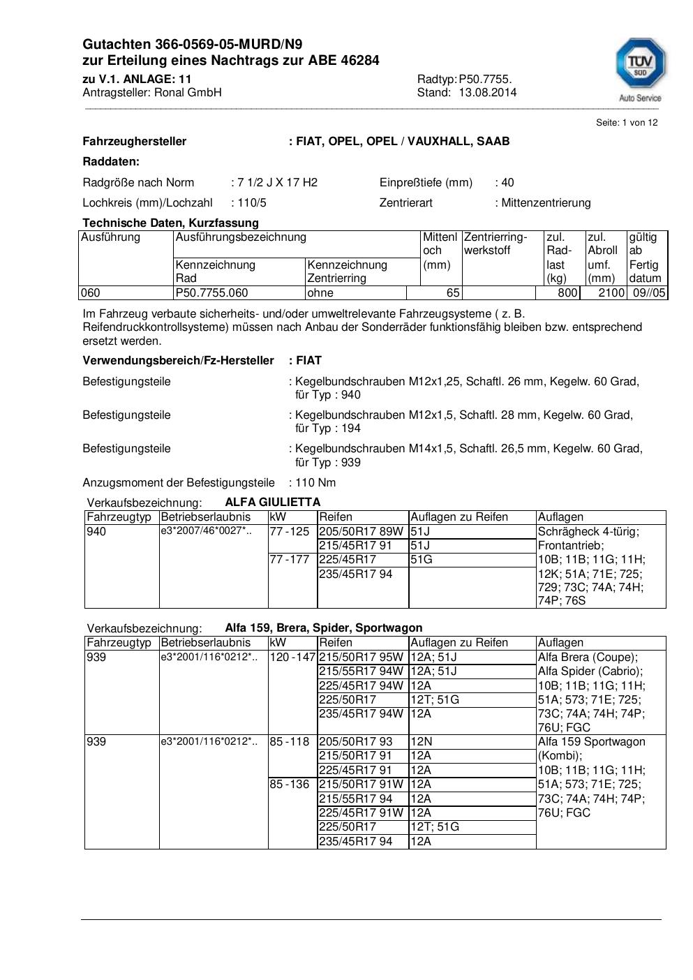 • Stimmt die KBA-Nummer auf der Felge mit diesem Dokument überein?