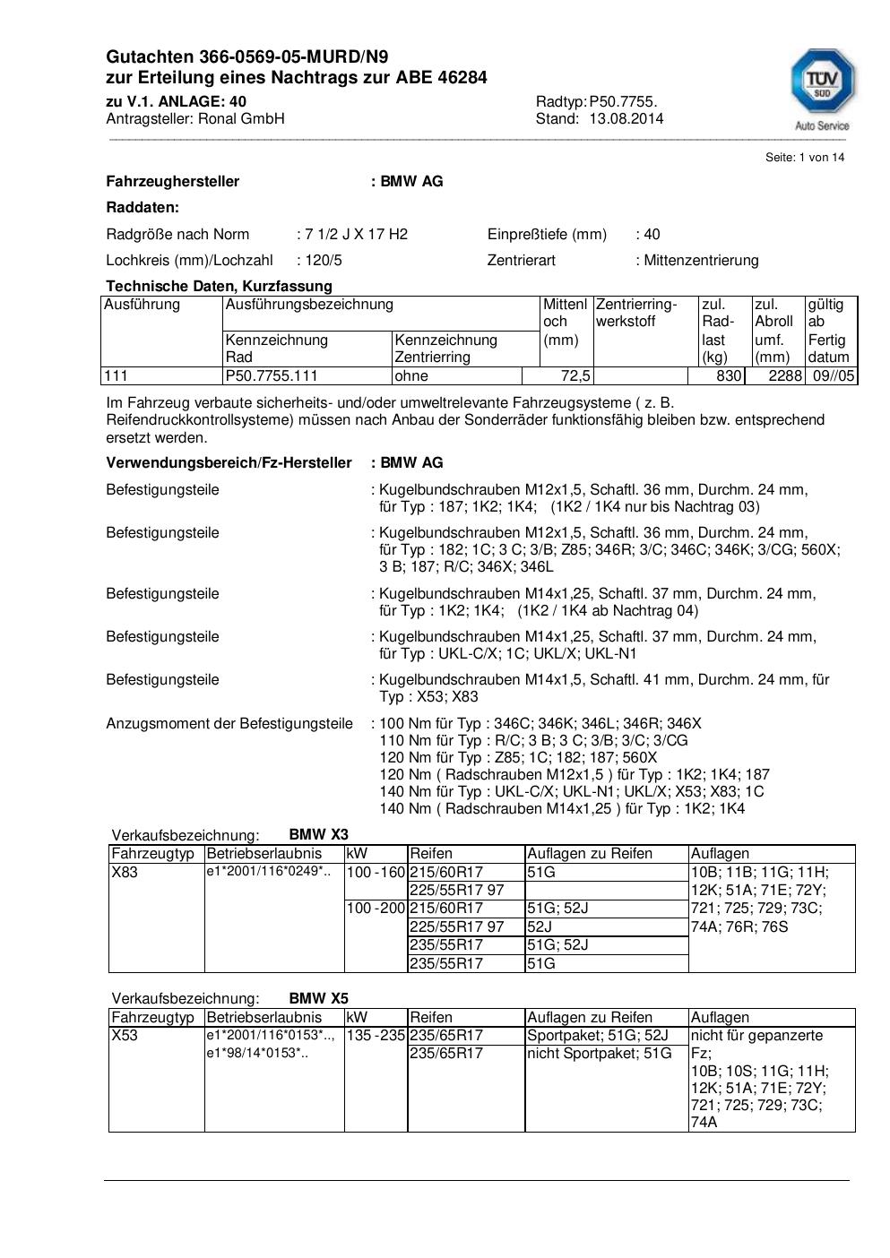 • Stimmt die KBA-Nummer auf der Felge mit diesem Dokument überein?