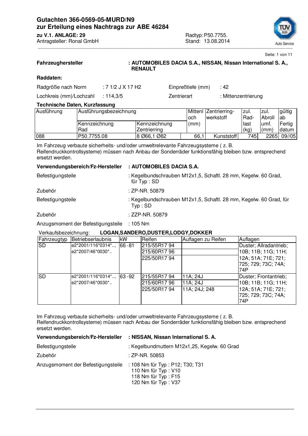• Stimmt die KBA-Nummer auf der Felge mit diesem Dokument überein?