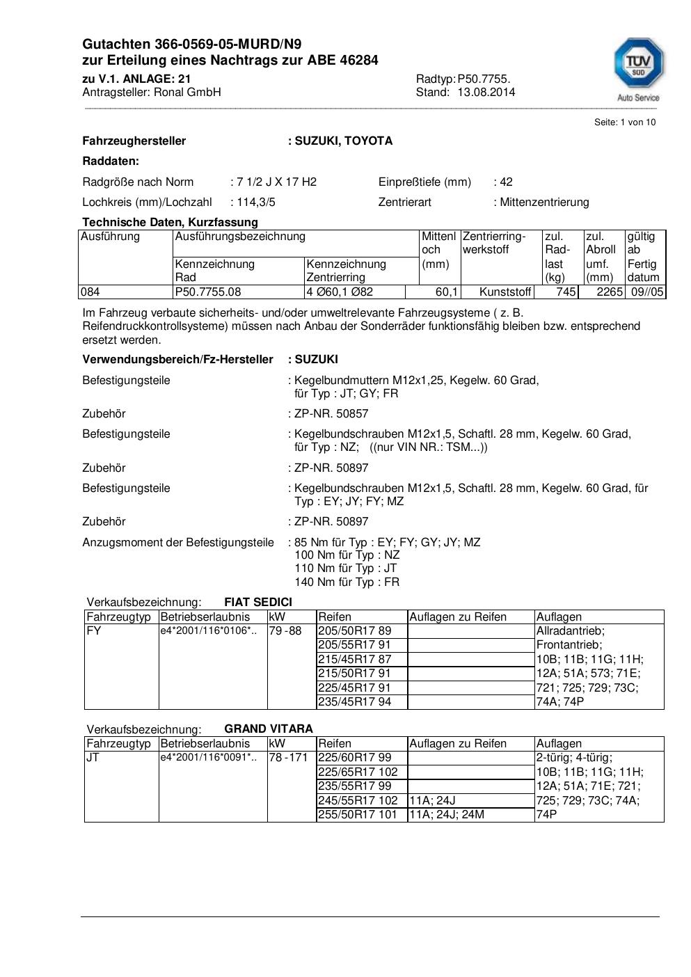 • Stimmt die KBA-Nummer auf der Felge mit diesem Dokument überein?