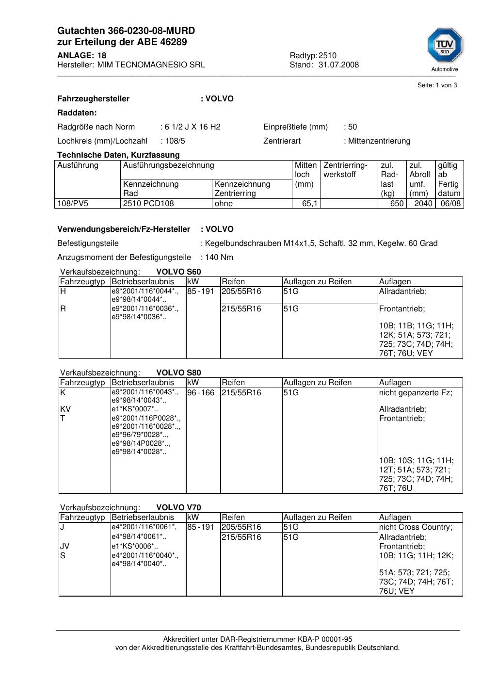 Felgengutachten / abe für Alufelgen ATS 2510 (2Jx16 ET 0, Mittenloch 0 mm) mit KBA 46289 (Zertifikatsnummer 46289). Hier kostenlos als PDF herunterladen. Der Download-Link ist 24 Stunden gültig und kann bis zu zwei Mal verwendet werden.
