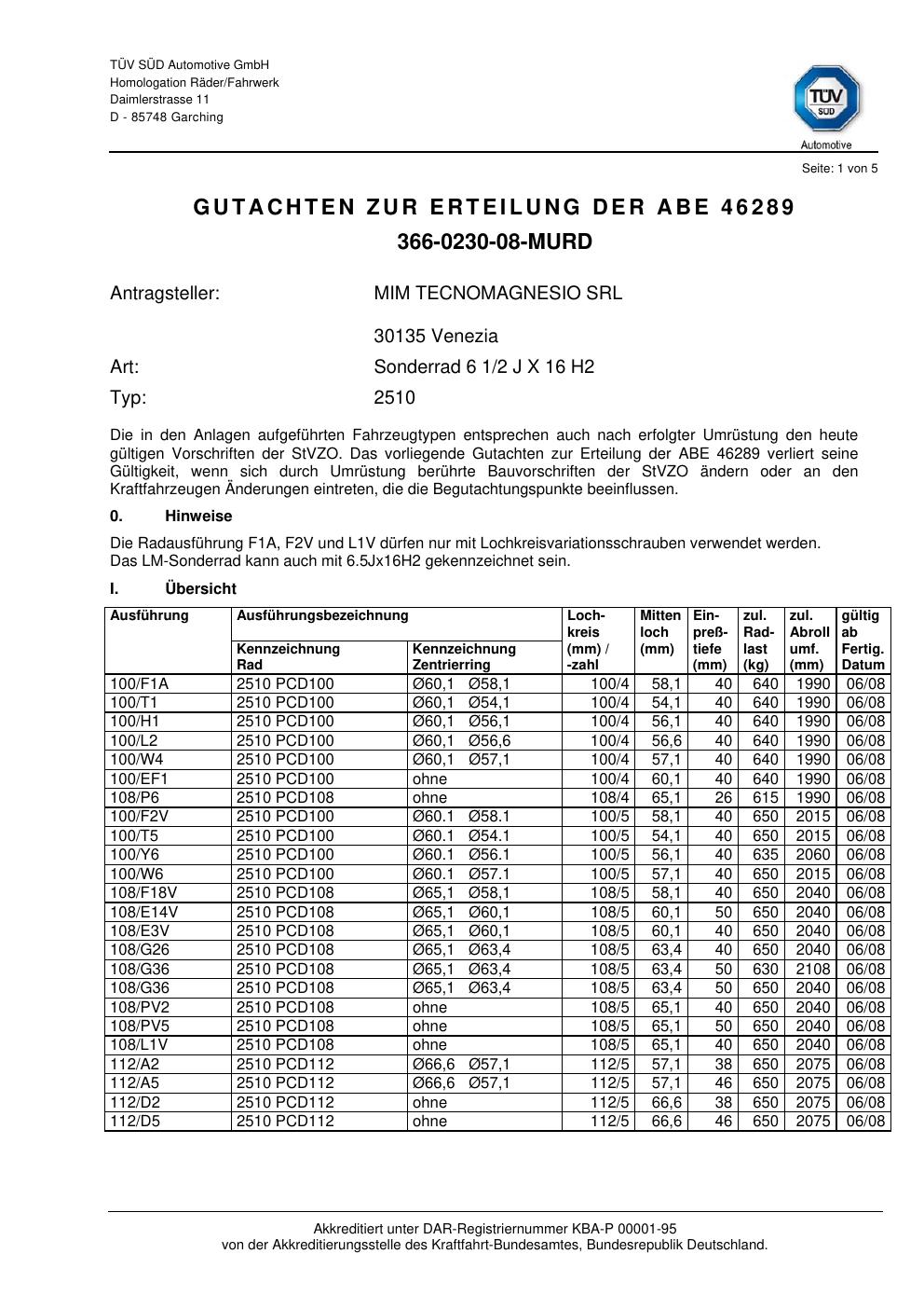 Dieses Gutachten (abe) bezieht sich auf die Alufelge ATS 2510 in der Ausführung 2Jx16 ET 0, Mittenloch 0 mm (KBA 46289). Im PDF findest du typischerweise zulässige Reifengrößen, Auflagen/Anbauhinweise und – je nach Dokument – Hinweise zur Eintragung.