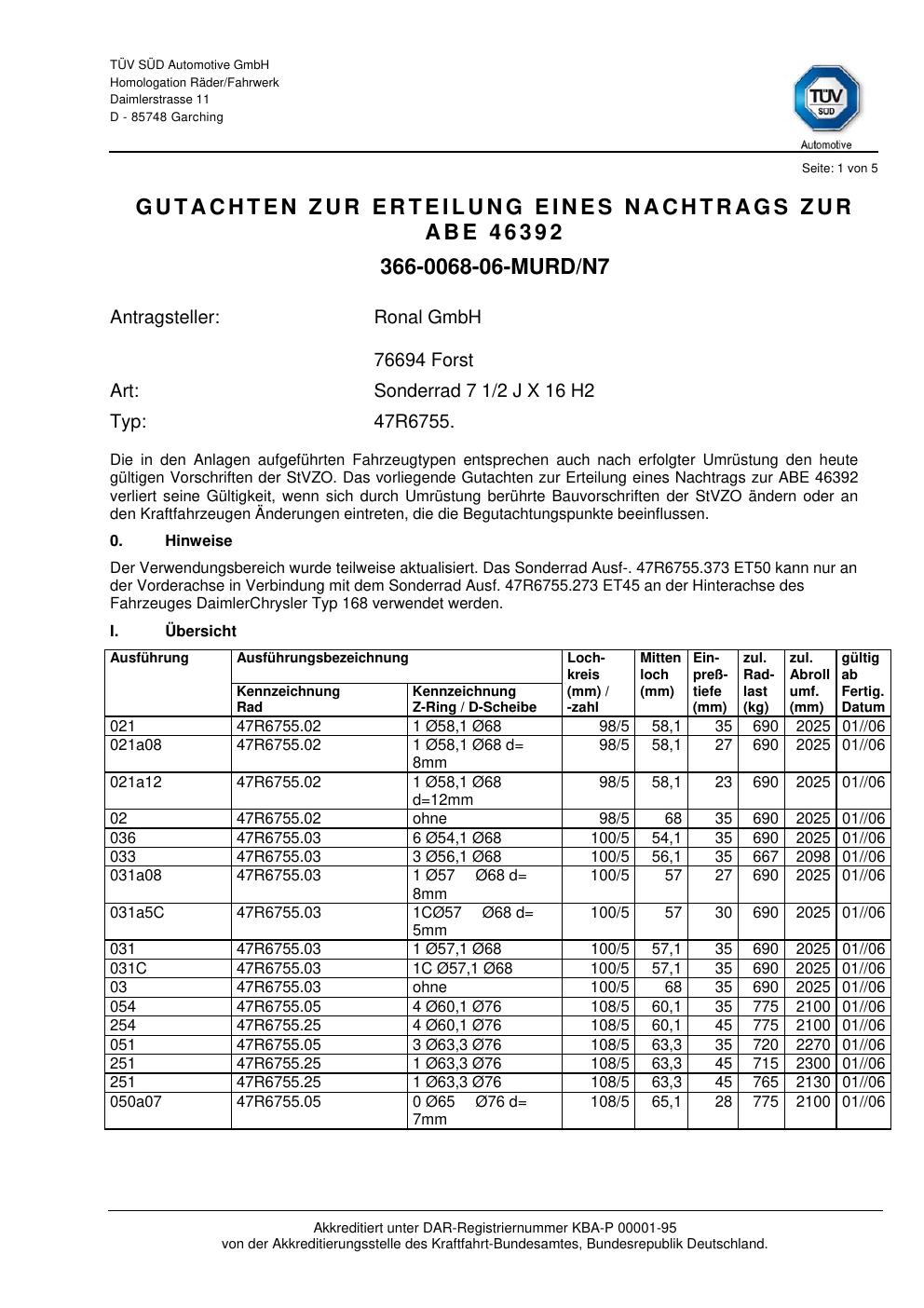 Dieses Gutachten (abe) bezieht sich auf die Alufelge ATS 47R6755 in der Ausführung 2Jx16 ET 0, Mittenloch 0 mm (KBA 46392). Im PDF findest du typischerweise zulässige Reifengrößen, Auflagen/Anbauhinweise und – je nach Dokument – Hinweise zur Eintragung.