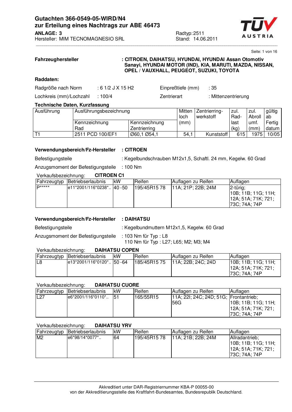 Felgengutachten / abe für Alufelgen ATS 2511 (2Jx15 ET 0, Mittenloch 0 mm) mit KBA 46473 (Zertifikatsnummer 46473). Hier kostenlos als PDF herunterladen. Der Download-Link ist 24 Stunden gültig und kann bis zu zwei Mal verwendet werden.
