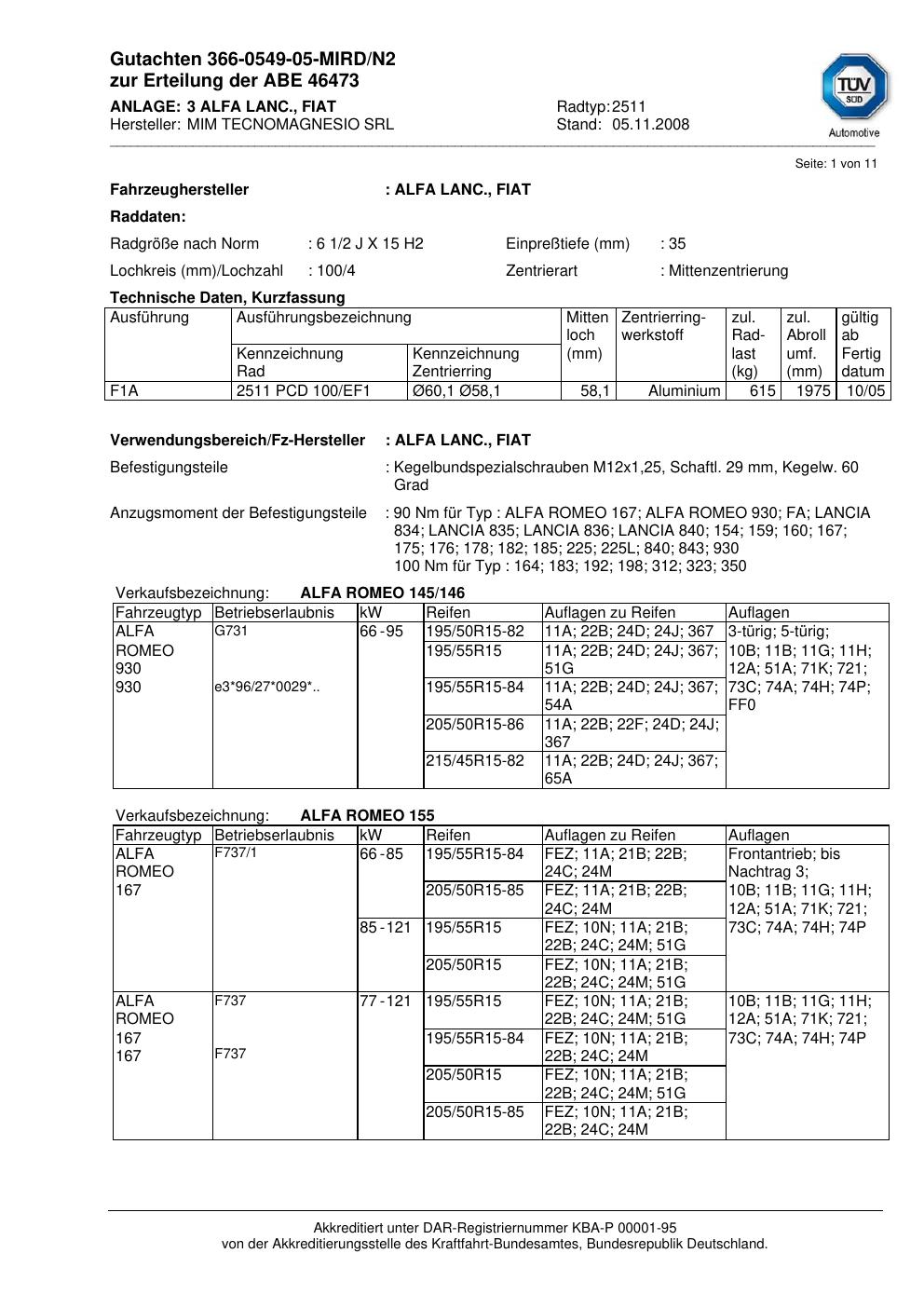 Fahrzeughersteller: ALFA ROMEO, FIAT, LANCIA