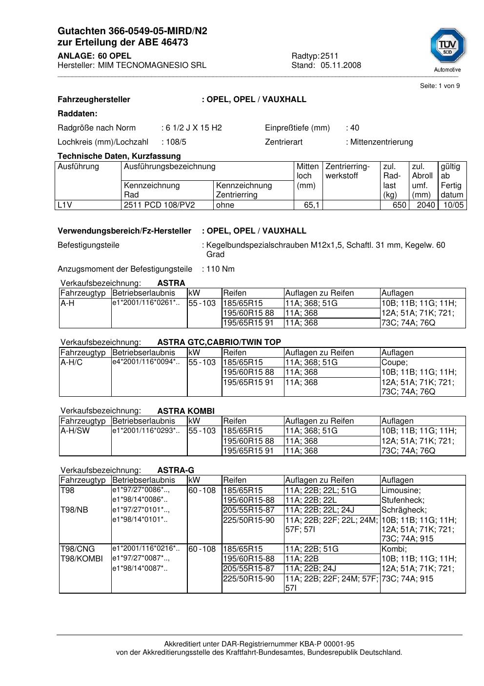 Felgengutachten / abe für Alufelgen ATS 2511 (2Jx15 ET 0, Mittenloch 0 mm) mit KBA 46473 (Zertifikatsnummer 46473). Hier kostenlos als PDF herunterladen. Der Download-Link ist 24 Stunden gültig und kann bis zu zwei Mal verwendet werden.