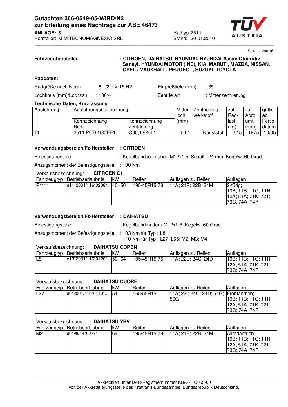 Fahrzeughersteller: CITROEN, DAIHATSU, HYUNDAI, KIA, MARUTI, MAZDA, NISSAN, OPEL, PEUGEOT, SUBARU, SUZUKI, TOYOTA, VAUXHALL