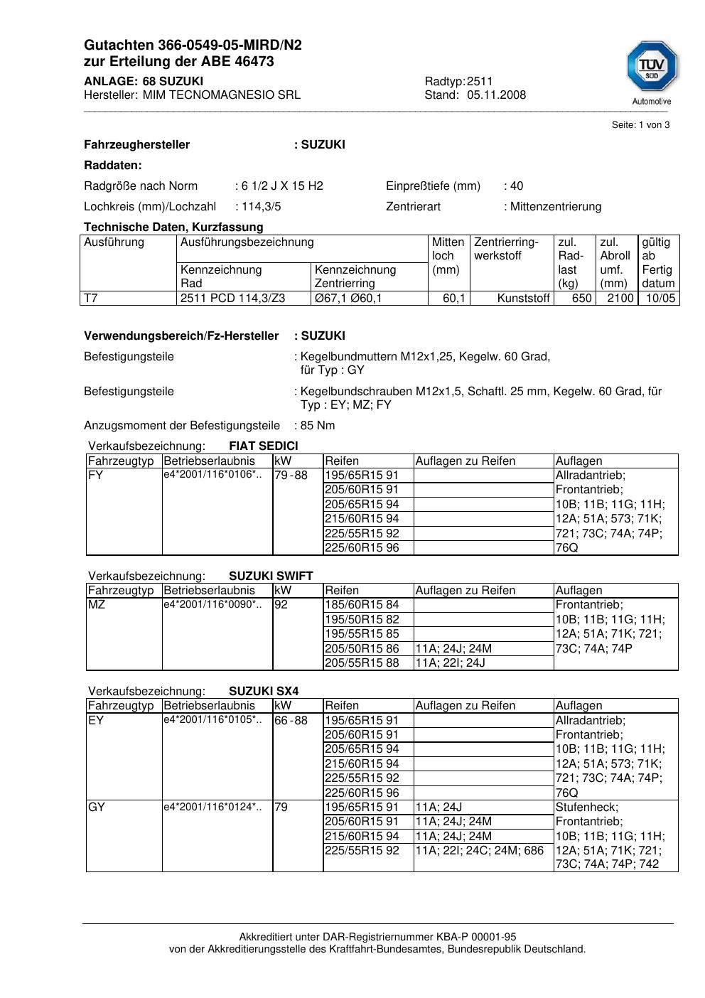 Fahrzeughersteller: FIAT, SUZUKI