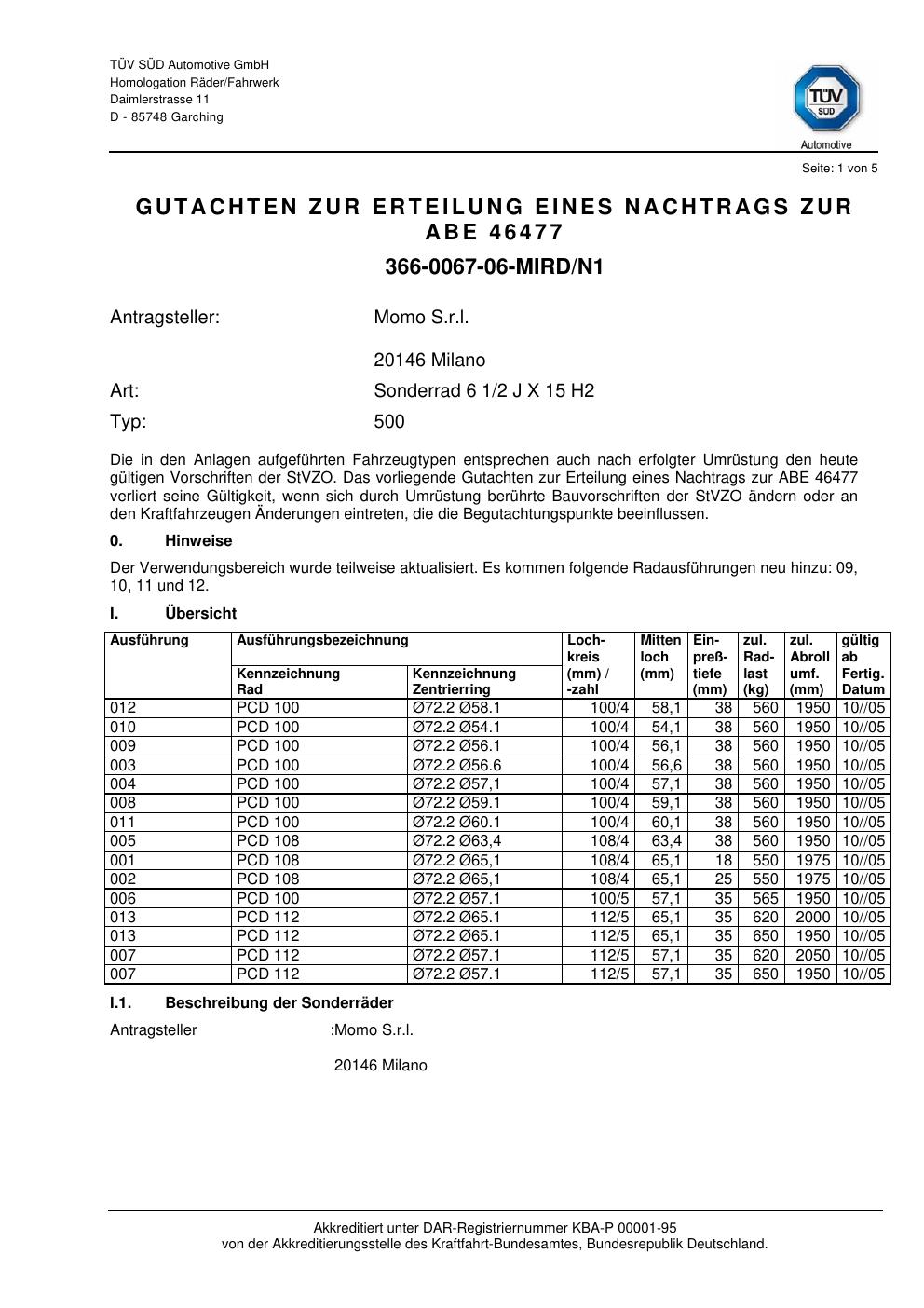 - Momo 500 – 2.0Jx15 ET0.0 (KBA 46477)
