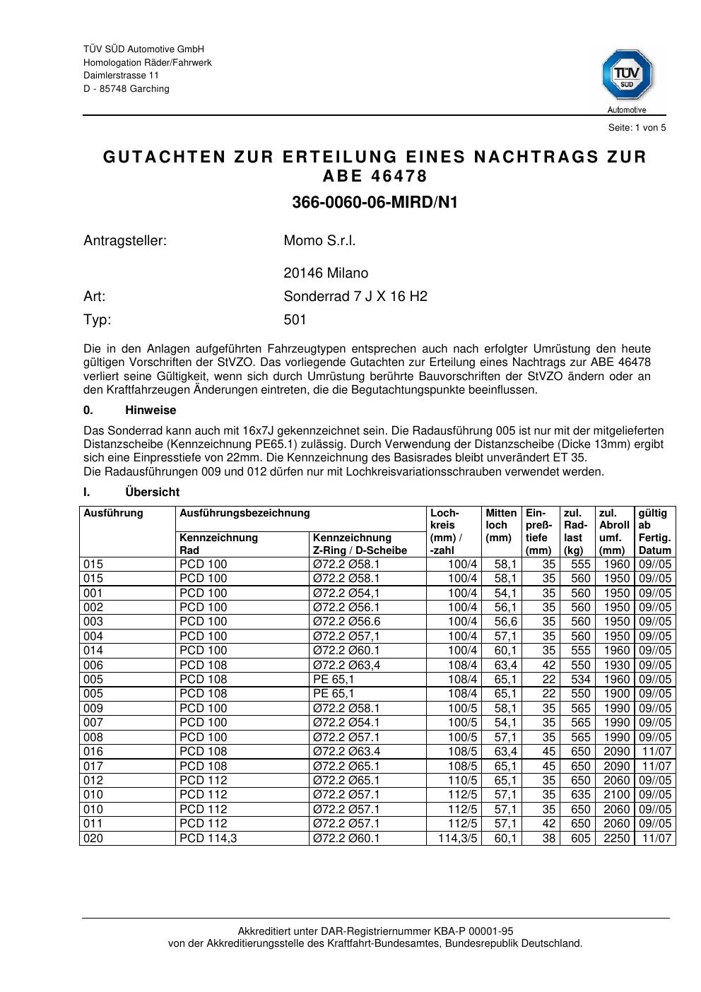 - Momo 501 – 7.0Jx16 ET0.0 (KBA 46478)