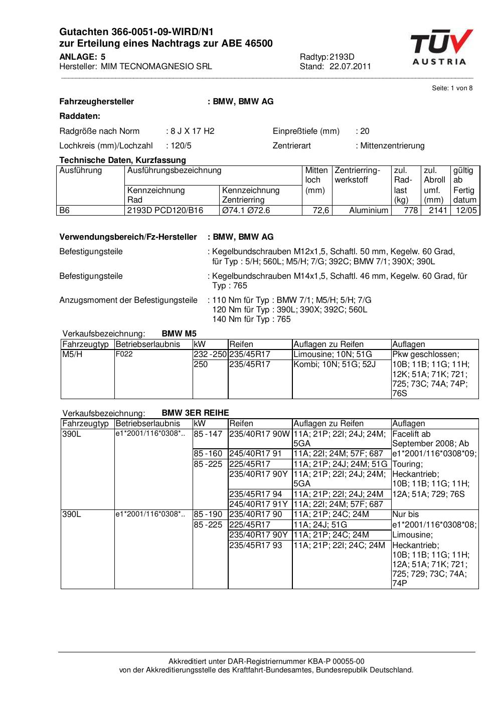 Dieses Gutachten (abe) bezieht sich auf die Alufelge ATS 2193D in der Ausführung 8Jx17 ET 0, Mittenloch 0 mm (KBA 46500). Im PDF findest du typischerweise zulässige Reifengrößen, Auflagen/Anbauhinweise und – je nach Dokument – Hinweise zur Eintragung.