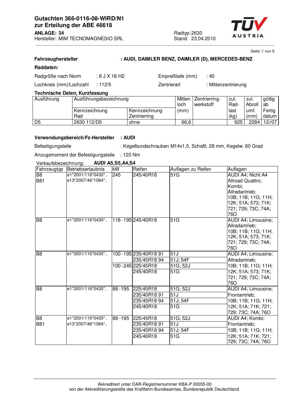 - Stimmt die KBA-Nummer auf der Felge mit diesem Dokument überein?