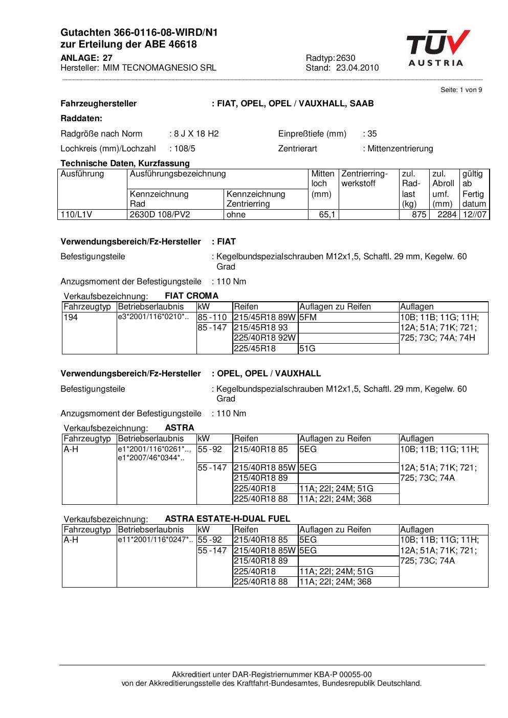 Dieses abe führt 4 Fahrzeugvarianten von 4 Fahrzeugherstellern als zulässig auf. Abgedeckt werden insbesondere Fahrzeuge von FIAT, OPEL, SAAB, VAUXHALL. Prüfe in der folgenden Liste, ob dein konkretes Fahrzeugmodell und – soweit angegeben – der passende Typ-Code (HSN/TSN-Variante) dabei ist. Der Typ-Code steht im Fahrzeugschein unter den Ziffern 2.1 und 2.2 – eine Schritt-für-Schritt-Anleitung dazu findest du im Wiki-Artikel zum Selbst-Prüfen des Gutachtens.