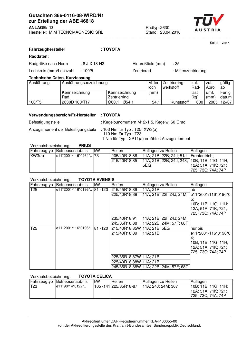 • Stimmt die KBA-Nummer auf der Felge mit diesem Dokument überein?