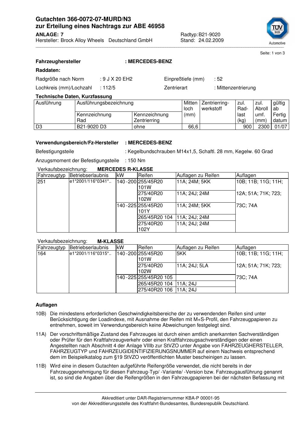 Felgengutachten / abe für Alufelgen Brock B21-9020 (9Jx2 ET 0, Mittenloch 0 mm) mit KBA 46958 (Zertifikatsnummer 46958). Hier kostenlos als PDF herunterladen. Der Download-Link ist 24 Stunden gültig und kann bis zu zwei Mal verwendet werden.