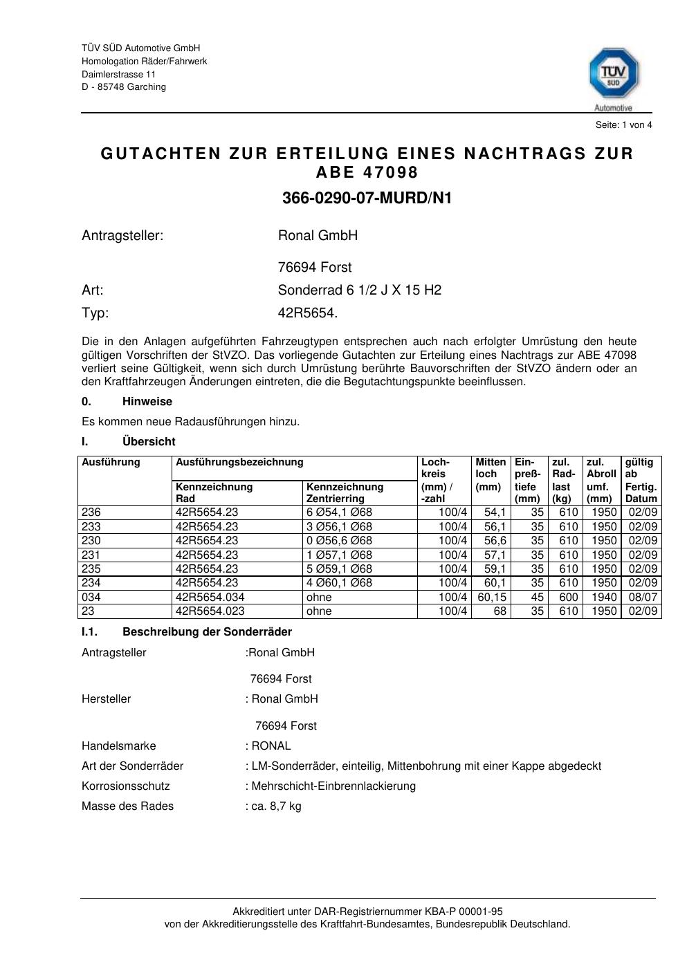 - Ronal 42R5654 – 6.5Jx15 ET0.0 (KBA 47098)