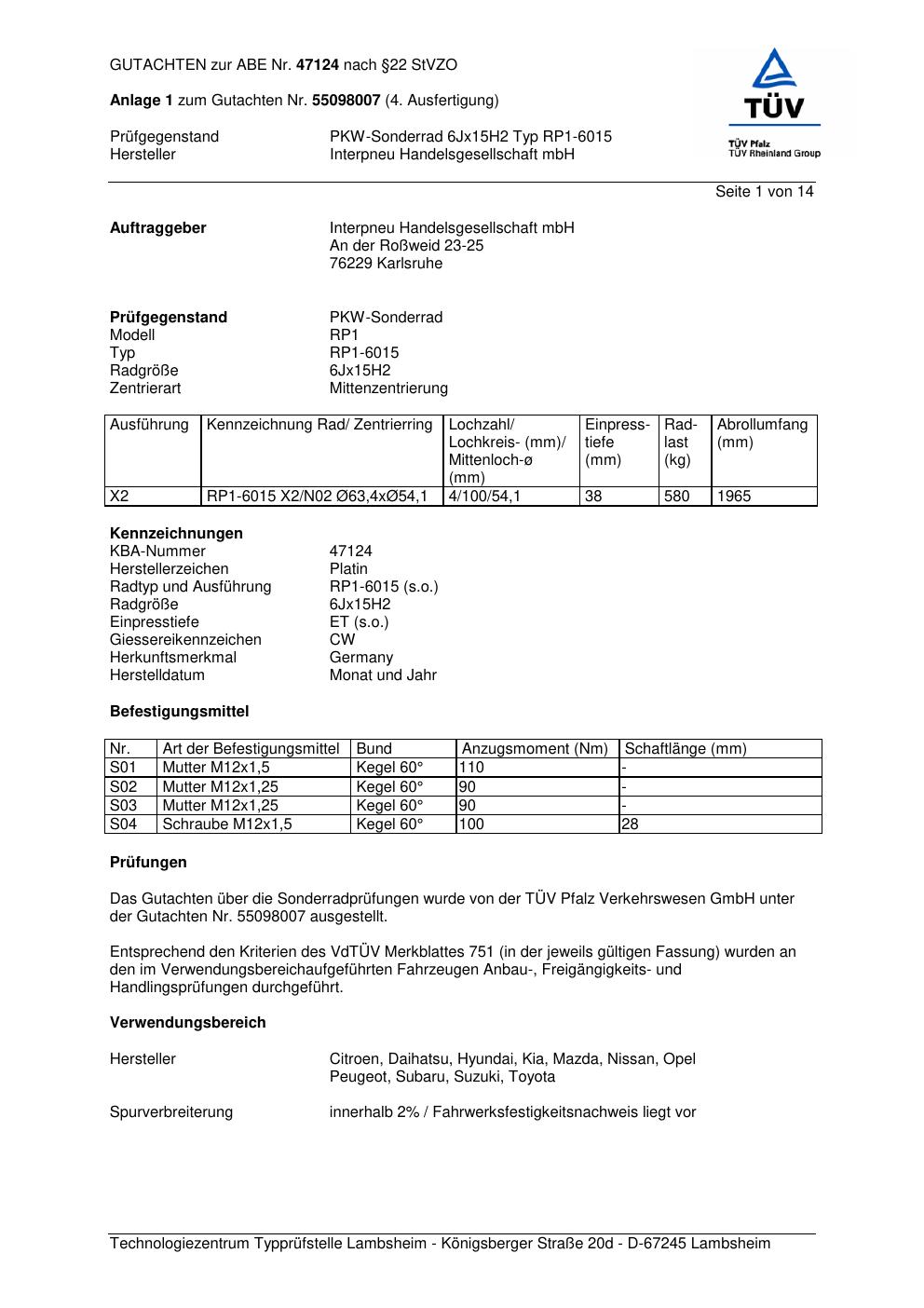 Dieses abe gehört zur Felge Platin RP1-6015 in 6Jx15 ET0 mit KBA 47124. Die Seite ist dafür gedacht, dass du schnell prüfen kannst, ob KBA, Design und Größe zu deiner Felge passen und danach direkt das richtige PDF lädst.