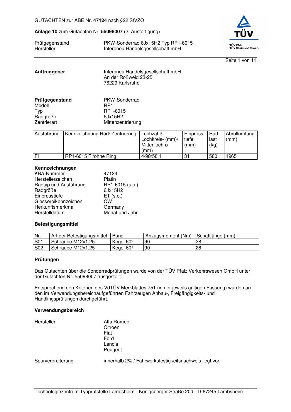 Dieses abe gehört zur Felge Platin RP1-6015 in 6Jx15 ET0 mit KBA 47124. Die Seite ist dafür gedacht, dass du schnell prüfen kannst, ob KBA, Design und Größe zu deiner Felge passen und danach direkt das richtige PDF lädst.