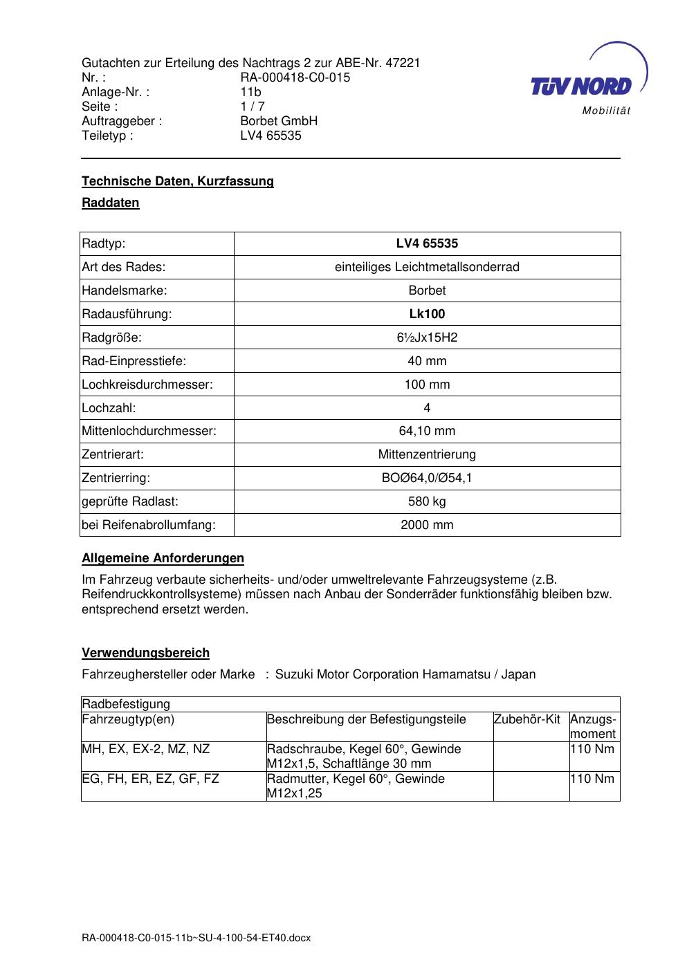 Dieses Gutachten (abe) bezieht sich auf die Alufelge ATS LV4 65535 in der Ausführung ET 0, Mittenloch 0 mm (KBA 47221). Im PDF findest du typischerweise zulässige Reifengrößen, Auflagen/Anbauhinweise und – je nach Dokument – Hinweise zur Eintragung.