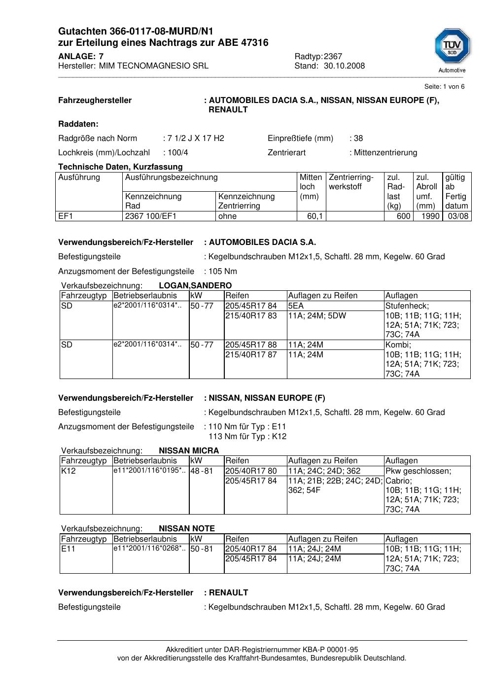 Fahrzeughersteller: DACIA, NISSAN, RENAULT