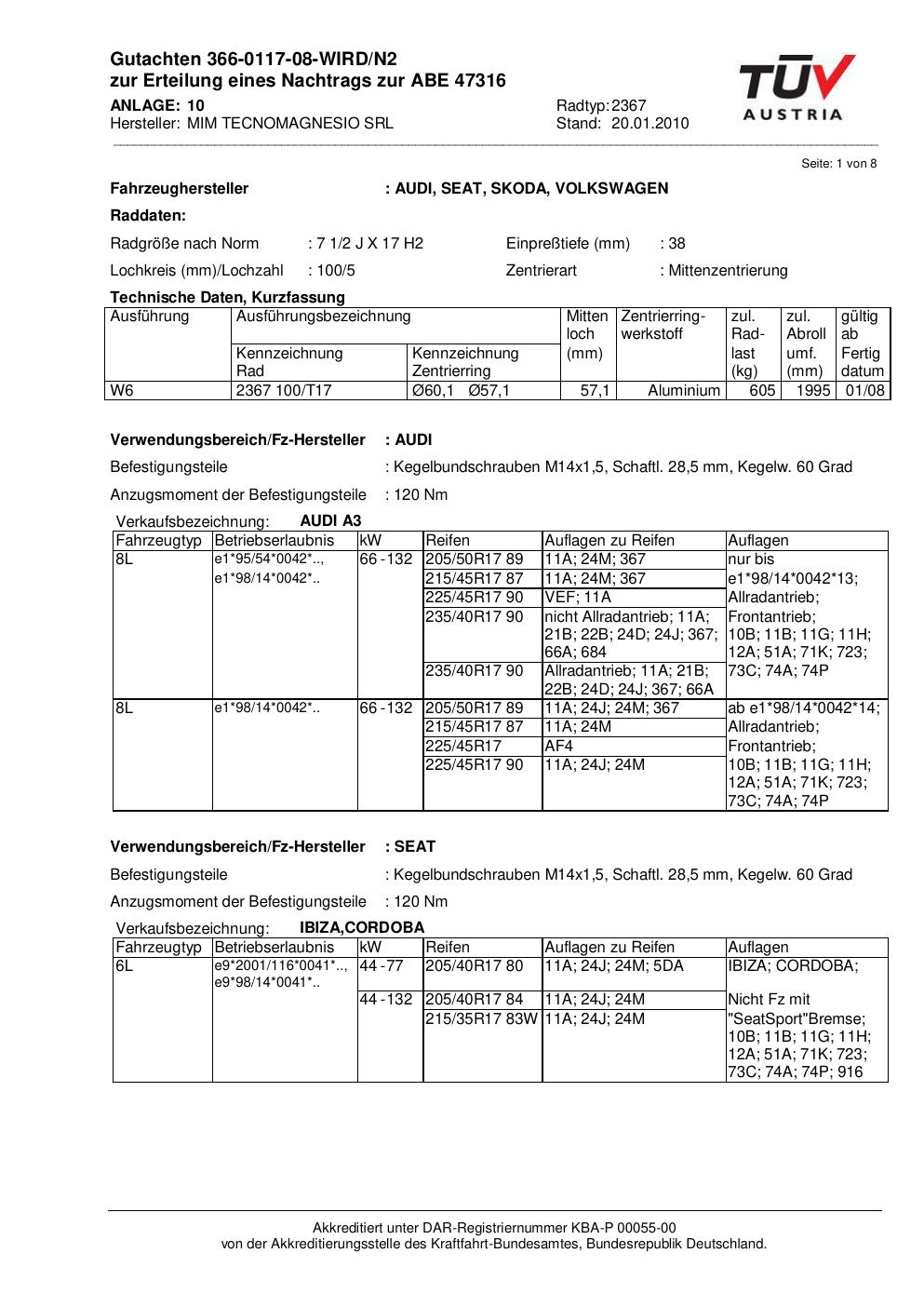 Dieses Gutachten (abe) bezieht sich auf die Alufelge ATS 2367 in der Ausführung 2Jx17 ET 0, Mittenloch 0 mm (KBA 47316). Im PDF findest du typischerweise zulässige Reifengrößen, Auflagen/Anbauhinweise und – je nach Dokument – Hinweise zur Eintragung.