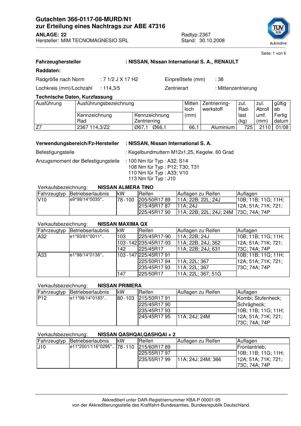 Felgengutachten / abe für Alufelgen ATS 2367 (2Jx17 ET 0, Mittenloch 0 mm) mit KBA 47316 (Zertifikatsnummer 47316). Hier kostenlos als PDF herunterladen. Der Download-Link ist 24 Stunden gültig und kann bis zu zwei Mal verwendet werden.