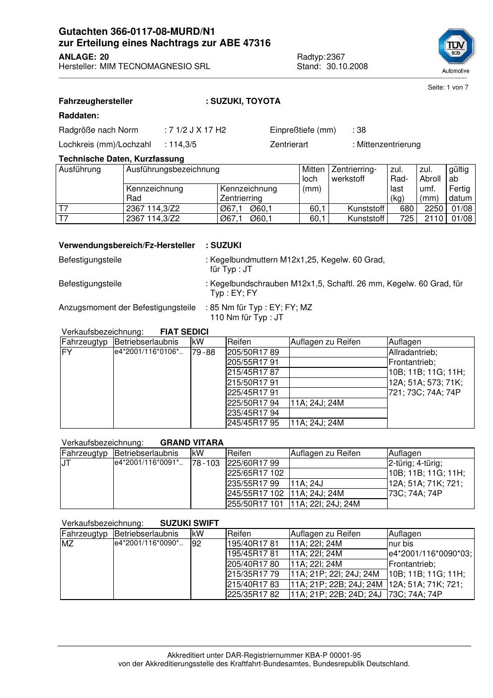 Fahrzeughersteller: FIAT, LEXUS, SUZUKI, TOYOTA